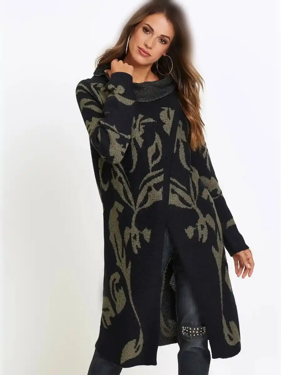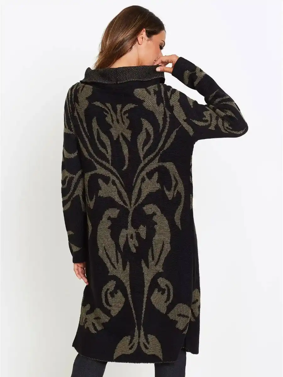 پانچوی بلند بافت مشکی سایهدار زیتونی